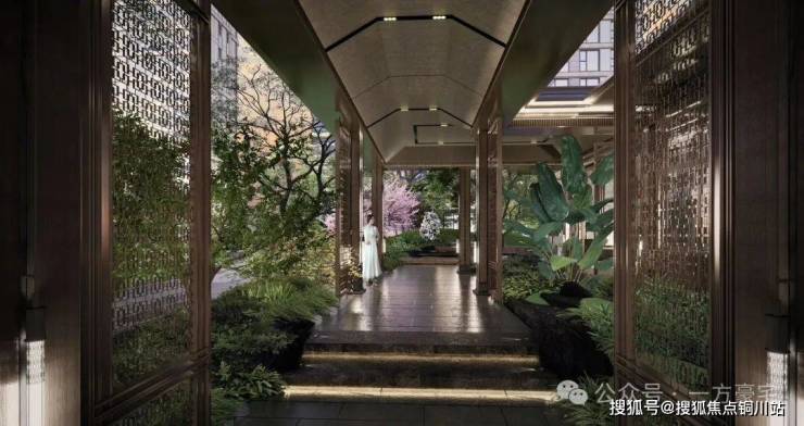项目采用围合式造园,打造1.5万方东方美学生活院落,以中式园林为引,采苏州“拙政园”灵感,东密西疏、移步易景,构建一条中心景观五进归家礼仪,三大会客厅,四大宅间生活美学体验区,九个主题游园,尊享体验归家动线。
