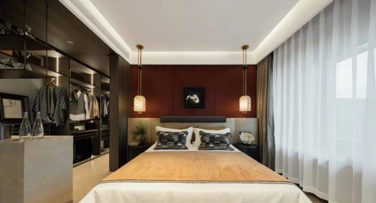 事实上,这款四室两厅三卫的大平层,不仅采光面多到离谱,整体尺度也彰显了东方大宅的气度。