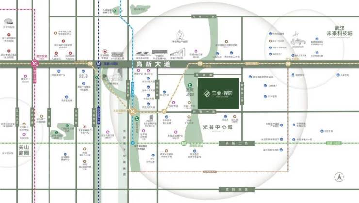宝业·璞园位于中国光谷的价值高地——万亿科创主轴高新大道旁,属于光谷中心城板块,距离11号线地铁口直线距离仅180米,毗邻亲子主题公园——星河公园。
