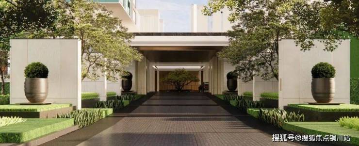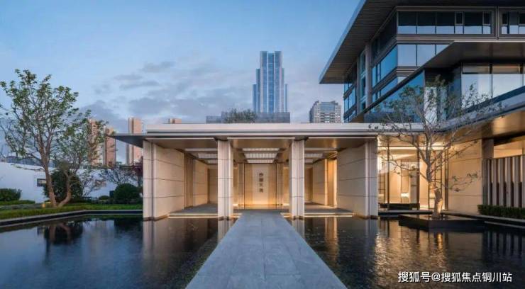 初见,低调奢华的门头采用大理石点缀金属,彰显雅致格调。镜水与景墙邀来光影,波光粼粼,色彩流转,为归家之旅拉开序幕。