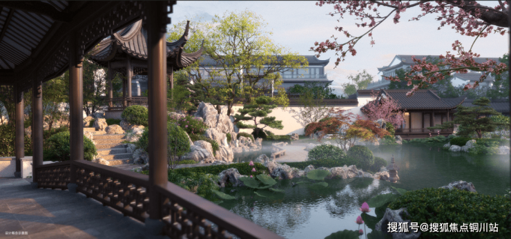 项目借鉴苏州街巷式之形,以“一环五庭三坊七巷”为布局理念,通过宅、巷、园、庭、门的五重归家院境,复刻明代山水画大师仇英《桃源图卷》之境。形成园中有园、景中有景,寄托居者情怀、传承中式风雅,契合富豪对私享场景的讲究。