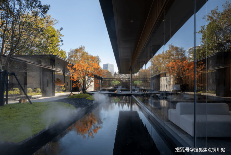 从步入约40米宽恢弘仪门的四进归家礼序开始,通过纯粹的材料、考究的工艺和多层次景观地形营造,松阅打造庭院7景,意在呈现东方气韵。