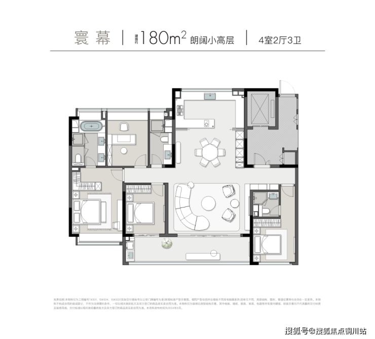 3、180㎡户型被誉为“满分大平层”,将市面上同户型的所有优点集于一身。