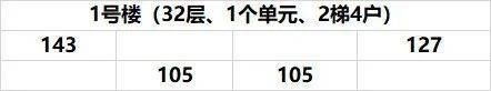 1号楼共32层,2梯4户,包含建面约105-143平房源,既有整个区域都几乎绝迹的功能性三房两卫(建面约105平)、也有面积适中的舒适性三房两卫(建面约127平)、功能性舒适性兼得的极致大四房(建面约143平)更是绝绝子。