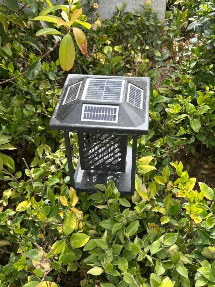 草地音箱设置预制基础,确保安装牢固无晃动,设备隐藏灌木丛,听声不见物,保持景观自然度;蚊控采用光伏发电,满足现场使用需求。