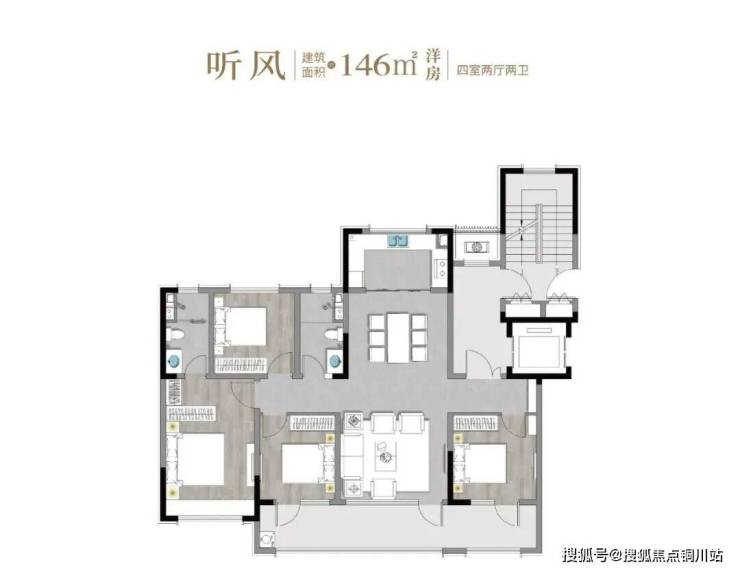 其中,建面约146㎡户型尤为惊艳,罕见实现四开间朝南,三南卧布局,南北通透且动静分区,各个空间的舒适性一绝,堪称青岛改善市场的“现象级”产品。