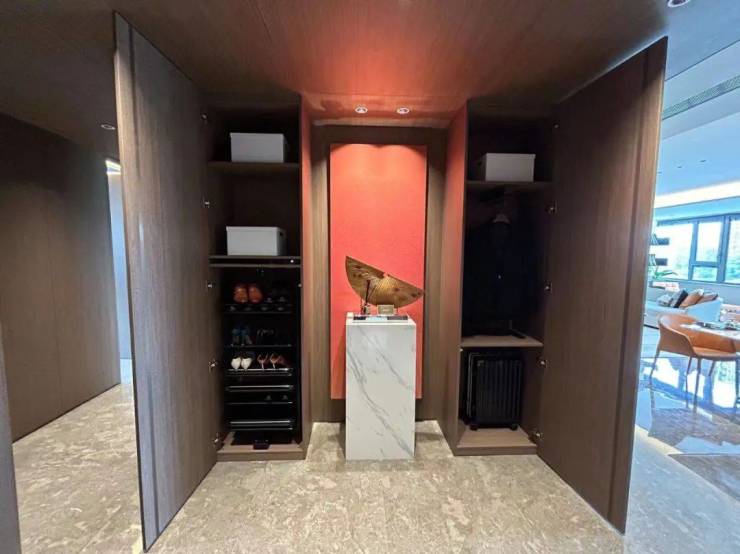 主卧的大尺度步入式衣帽间也非常可观,约10㎡的独立衣帽间区域在市面上并不多见。↑↑↑