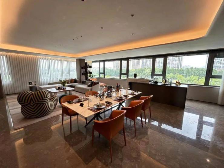 项目已于今年6月领取房源销许,精装均价51398元/㎡,首付3成,不过目前网上房地产显示,该项目还未有已销售的数据。可见在下行市场当中,竞品众多又“卷”的情况下,大面积豪宅的销售去化压力依旧不小。