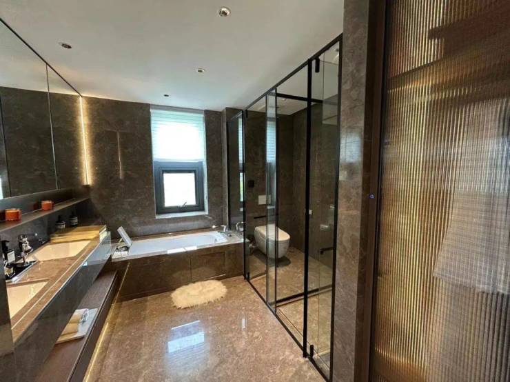 主卫同样配备双台盆、浴缸、和独立的淋浴间。↑↑↑