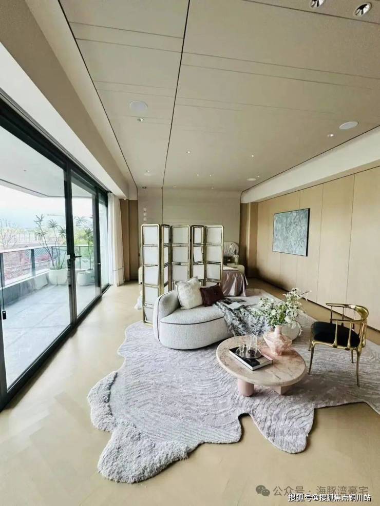 风穿过客厅时,能听见纱帘轻拂与绿植摇曳的声音。黄昏时分,阳光从东侧落地窗斜切而入,在地面铺展成梯形光斑,直至夜幕降临仍未完全退去。