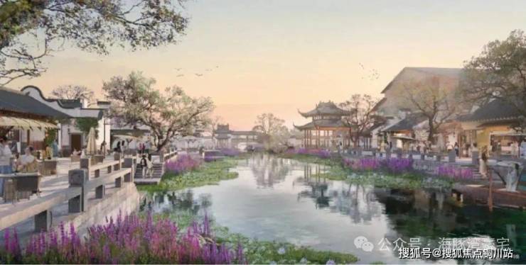 以江南传统的水乡建筑为参照,融合了徽派、苏派等多种建筑风格。以粉墙黛瓦为基调,提取重檐庑殿顶作为叠墅屋顶形制,庄重而贵气。