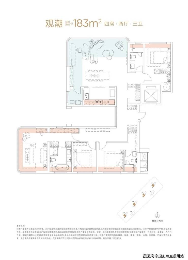 💯 超高得房率:作为准四代住宅,灵动阳台 + 飘窗全赠送,得房率超高,143 平得房率达 103%,183 平更是达到 113%,实现 “零公摊” 甚至 “负公摊”,性价比凸显。