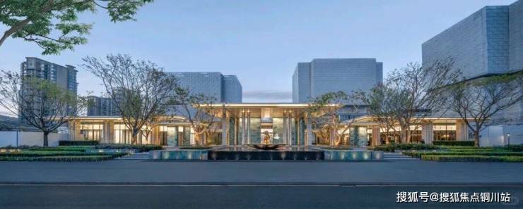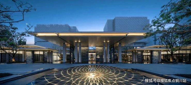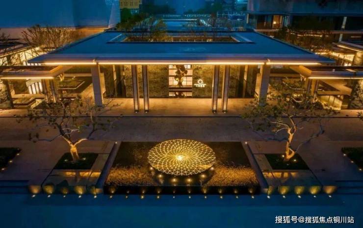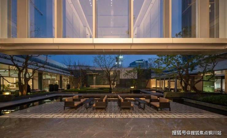 大堂的挑高约15米,作为回家的过渡空间,连接着会所和下沉庭院。下沉庭院面积约960平方米,设计灵感来源于山水城市,巧妙地设置了六个叠瀑和五道豪华的石片墙。庭院内种植了大量树龄约50年的乌桕,这些树木是从全国各地精心挑选而来。曲水流过,留下芳香,游走其中,宛如置身于“独自洗涤苍苔注入云壑,白鹤飞翔绕过青云”的闲适意境。