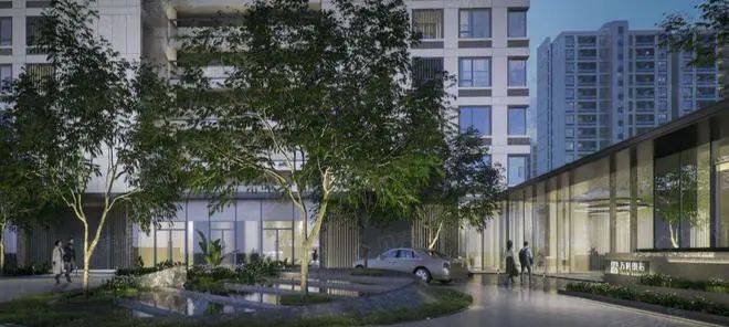 ➤ 落客庭院,进入迎宾门廊便是落客庭院,定制的整石雕刻而成的石台上镶嵌着金色的项目logo,特选的从生乌桕赫然挺立,在静静等候业主的到来;