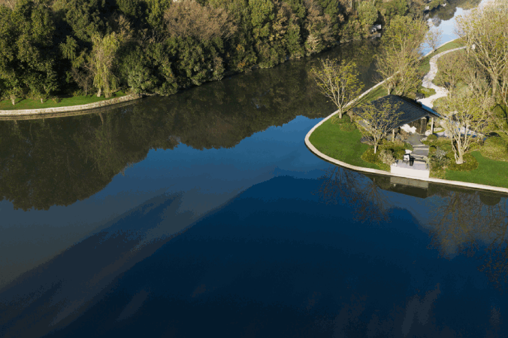 知屿雲璟作为板块内唯一以合院+叠拼为核心业态的纯低密社区,更占据了双水系交汇与滨水绿廊环绕的核心生态资源,这种天然的稀缺性与核心资源占有,正是项目立足高端市场、获得市场认可的基础前提。