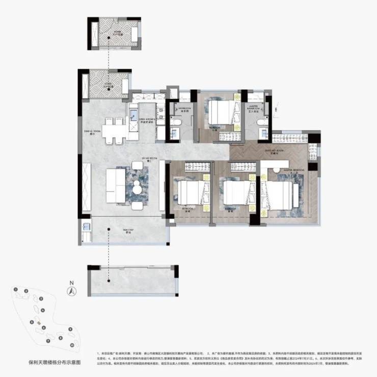 建筑面积约173平方米的户型,则将浪漫与秩序巧妙融合。超越尺度的LDKB设计,赋予生活更多自由体验。约270°环幕观景舱,浩瀚江景迎面而来。还有双观景套卧,层层递进的空间布局,以艺术的语言演绎生活的层次与秩序,尺度之大,堪比大平层。