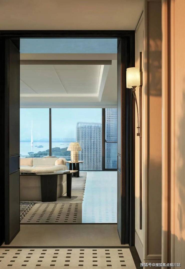 作为武汉首个半隐框纯玻璃幕墙商业大平层,以无柱式的设计语言来处理转角,得以让居者目之所及“无止景”。加之大面积外墙面设计,让每一户拥有270度景观视野。