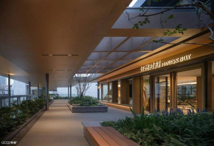 ▲实景图:出挑的外廊灰空间消融了商业与公园的边界©UCGD有乘