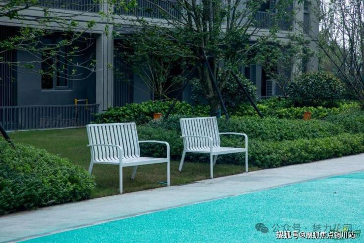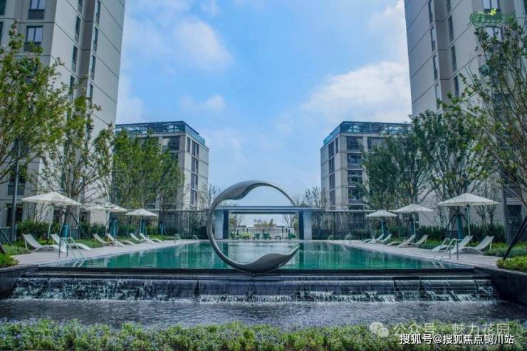 步入小区,不难发现小区整体采用清亮明快的灰白色调,色彩简洁又大方,一排排的建筑错落有致地排列其中。其中最引人注意的自然是那蔚蓝色的中心水花园了。