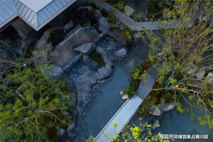 由瀑布、石景、下沉水景打造的立体三维景观,通过会客空间“闻玉亭”尽收眼底