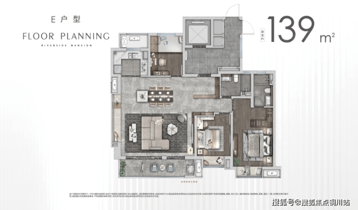 139平户型打造独立玄关,物归其位,跃升品质感与仪式感;270°环景客厅,超广角视野,尊享阔境人生;应需设计的可变四房,可打造为独立书房、专属琴室、茶室、储藏间等,满足生活更多可能;主卧套房设计,配置私卫飘窗,营造私密时光,诠释真正的惬意起居体验。
