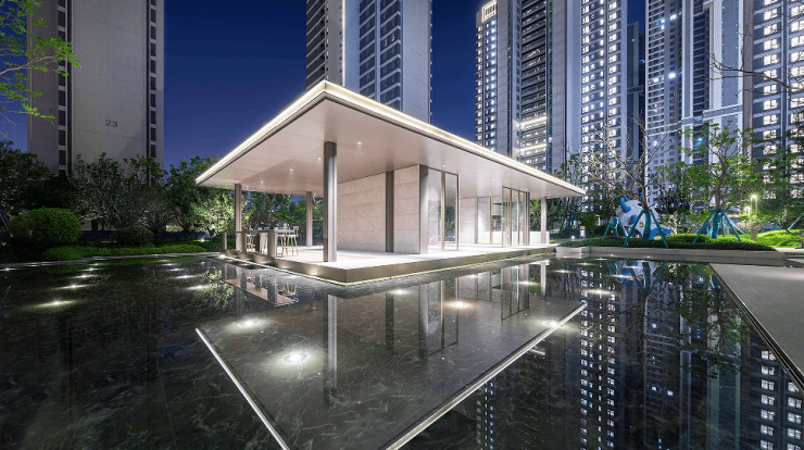 建筑设计:采用现代简约的建筑风格,公建化外立面,以大面积的玻璃和金属线条相结合,不仅提升了建筑的整体品质,还增加了室内采光和视野,让建筑与周边环境相得益彰。