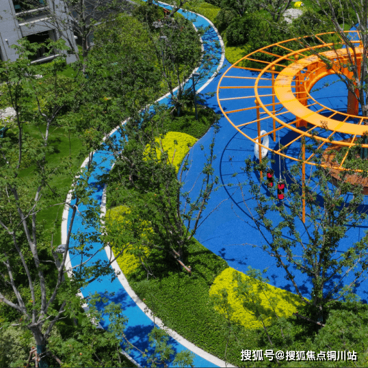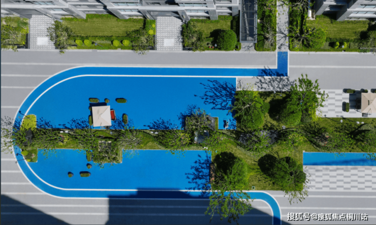 社区铺设环形运动跑道,甄选环保型材料,兼具安全质感与生态友好特性。高饱和度色彩如流线般环绕园区,勾勒出活力盎然的 “悦动健身环”,践行健康社区理念。