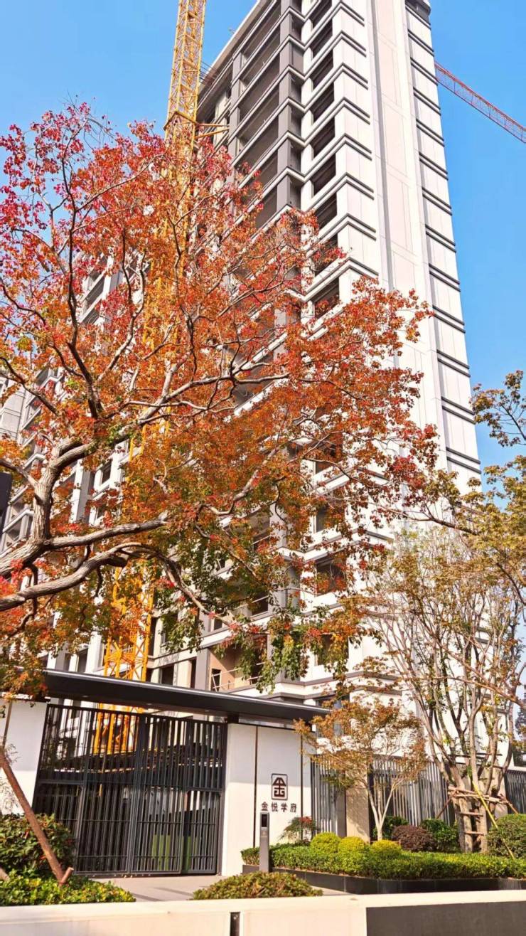 秋,向来悄无声息地抵达,轻得让人几乎无从察觉。等回过神时,身影已落在秋冬的交界处。金悦学府内,乌桕树正肆意铺展着秋的色彩:红的热烈、黄的明亮,红绿黄三色交织在枝头,一半是浓艳的秋韵,一半是初冬的清寂,美得格外动人。