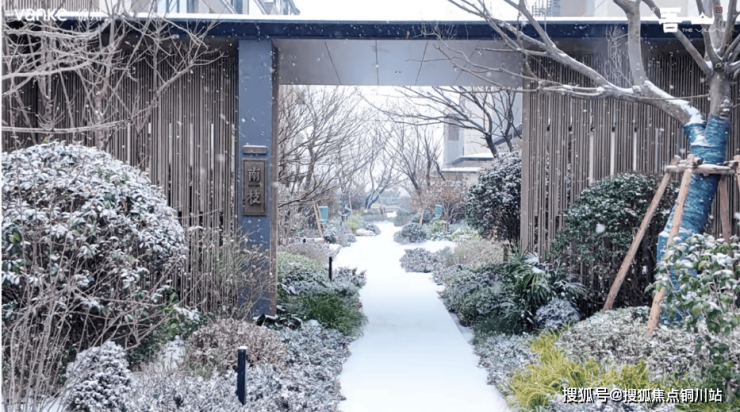 雪后的万科昆吾,美得像一幅缓缓展开的画。庭中翠影被白雪轻覆,琼枝裹素,幕前院畔,尽是清宁与安然。