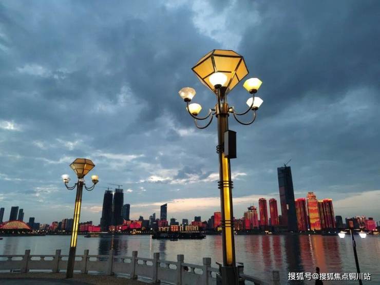 夜暮降临,对着开阔的江面,一边拉伸,一边看日落、吹江风。