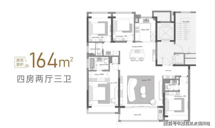 2. 产品稀缺:纯粹圈层与懂生活的尺度:项目起步即建面约164㎡,是古城当前起步面积最大的大平层,这本身就是一个精准的圈层筛选。更为重要的是,其户型设计展现了对高端生活方式的深度洞察。以建面约164㎡户型为例,独立电梯厅奠定归家尊崇感;LDKB一体化布局衔接约5.7米转角阳台,空间恢弘通透;南向双套房设计分置东西,完美解决多代同居的隐私与舒适需求。