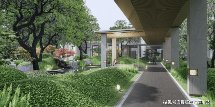 十花园其三:【康养花园】以康养为主题,设置康养花园、林下太极、健身平台等,从社区邻里、生态自然、健康运动等多维度提升居住体验,周边设计观景平台,阳光草坪与组团植物共同营造静谧休闲空间,便于长者交流与家庭户外活动。