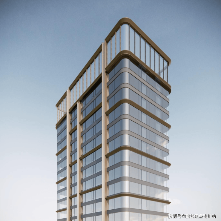 在材质上 选用玻璃慕墙,香槟金和闪银色的金属铝板 呈现品莹剔透感。弧形的墙面轮廓打破方正,仿佛也寓意着突破边界的设计暗语。