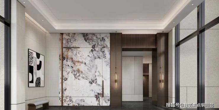 地下入户大堂则采用了少见的精奢吊顶,呈现出璀璨的星空天幕;电梯轿厢内部采用了大面积大理石结合大面积金属包装,让你日常出入尊贵感拉满。