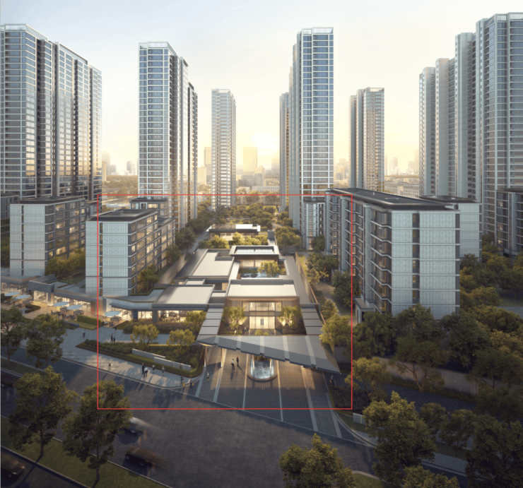 下图是社区大堂效果图,曲径通幽,归家如同度假的开始。