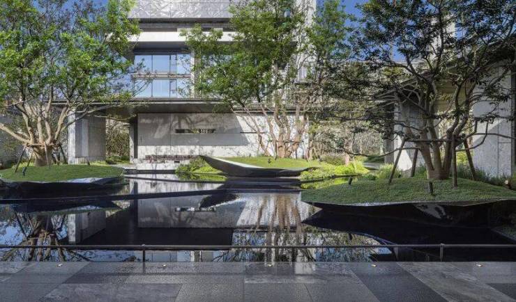 归家路上,经过层层叠水与酒店式归家门厅,三座漂浮岛屿对应中国传统园林“一池三山”,归家的轨迹,遍布长江的丰美气韵。每一步都似穿越诗意秘境,这是一处会呼吸的景观,更是沉浸式的天然疗愈场。