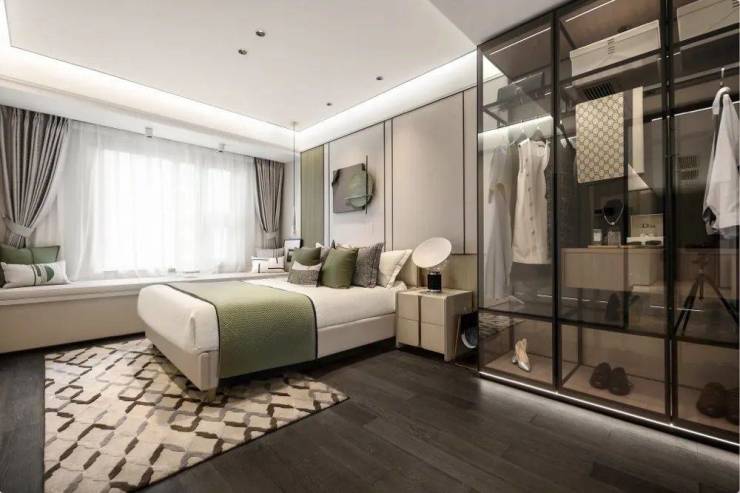 主卧套房:约 21㎡奢阔空间自带独立卫浴、衣帽间,约3.3 米大面宽飘窗将晨光与星辰化作每日问候,让主人私域成为真正的「治愈港湾」;