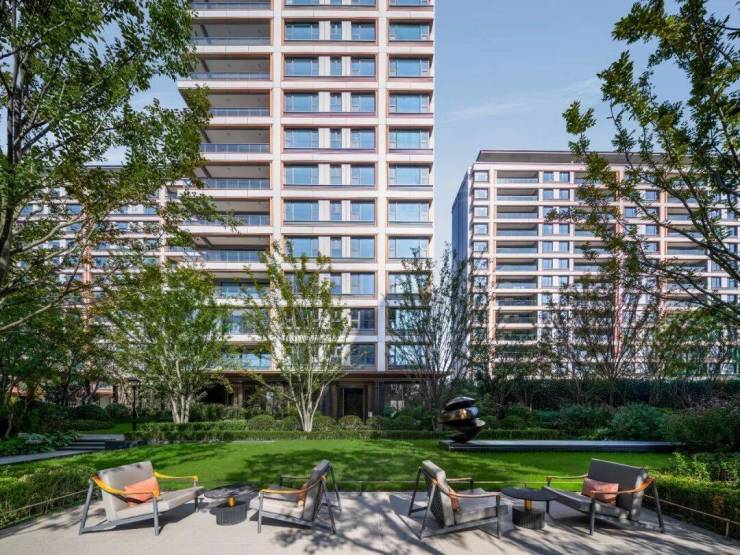 在归家仪式上,取法寄畅园渡河而归的七韵桥,加上约47米超尺度酒店式环岛落客区,以及价值不菲的巨型迎客松、爱马仕奢石等,铺陈出奢侈品级的归家空间。