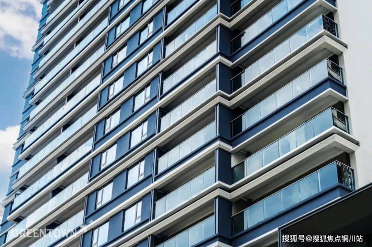 同时,立面采用断桥铝LOW-E玻璃门窗,搭配铝线条,起到隔音、降噪、降温的作用,阳台采用水晶灰的钢化玻璃栏板,与蓝灰色的主基调和谐过渡,兼具功能实用与美学观感。