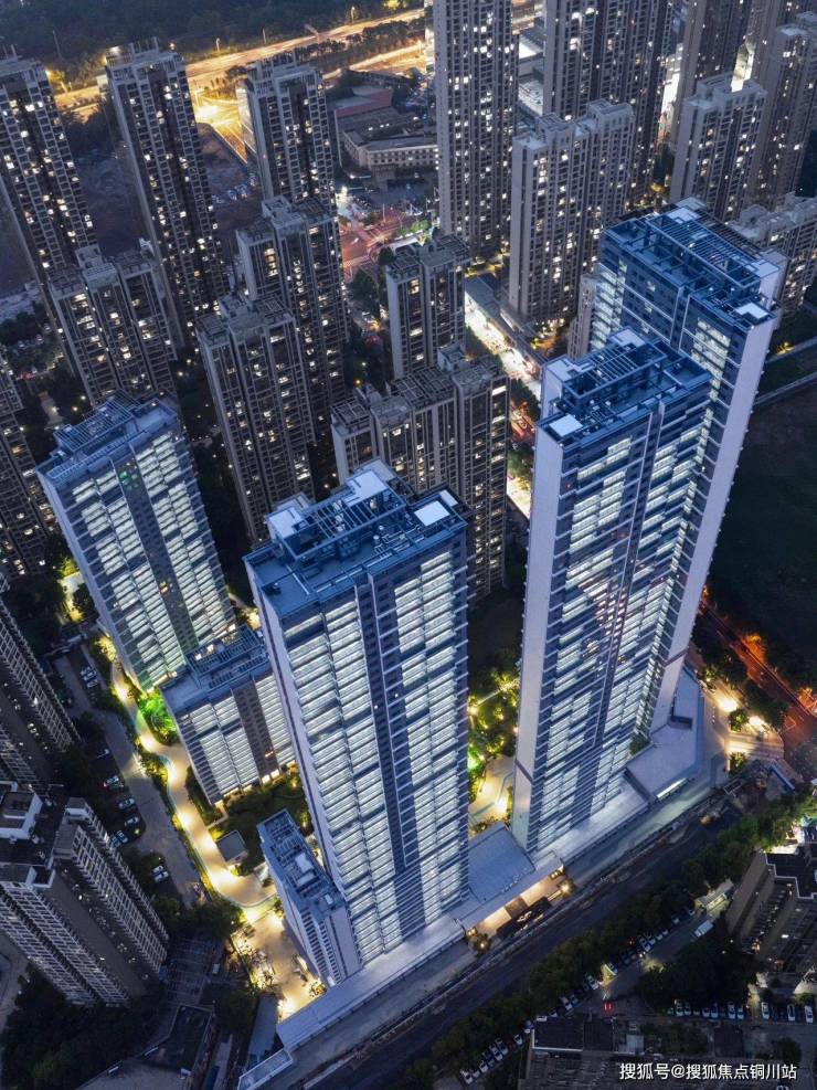 从国际艺术风尚采撷灵感,项目采用类公建化立面,约0.23的极致窗墙比,一体化的蓝灰色质感,整体轻盈且消隐。