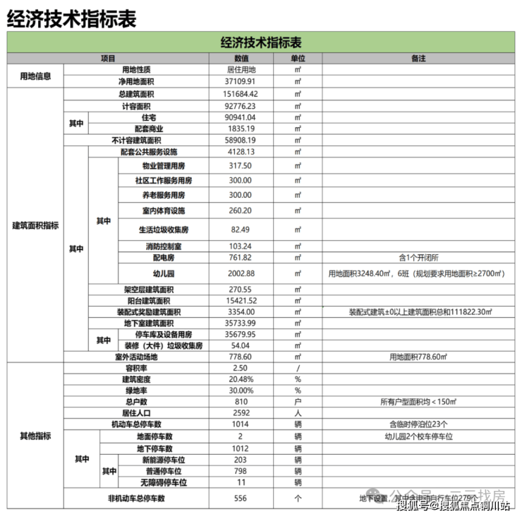 据公开数据,住宅建筑面积约90941.04㎡,容积率仅约2.5,一共810户,户均面积112.27㎡(所有户型均<150㎡),户均阳台面积约19.03㎡(不计容)。机动车位1014个,车位比约1:1.25。