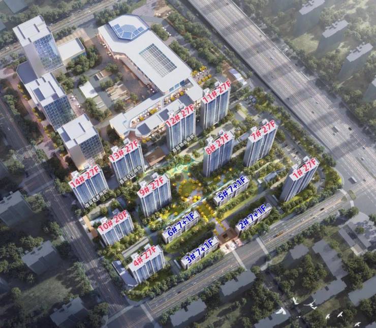 年前,项目规划公示,包含12.5万㎡的住宅和1479㎡的商业,住宅部分共建10栋20-27F高层(1栋20F、1栋25F、8栋27F)+4栋7+1F洋房,总户数1140户。
