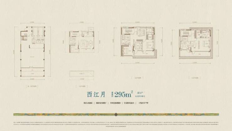 目前释放的295平和340平产品,南向面宽都超10米,再加上巨幕落地窗采光,让阳光铺满每个角落。