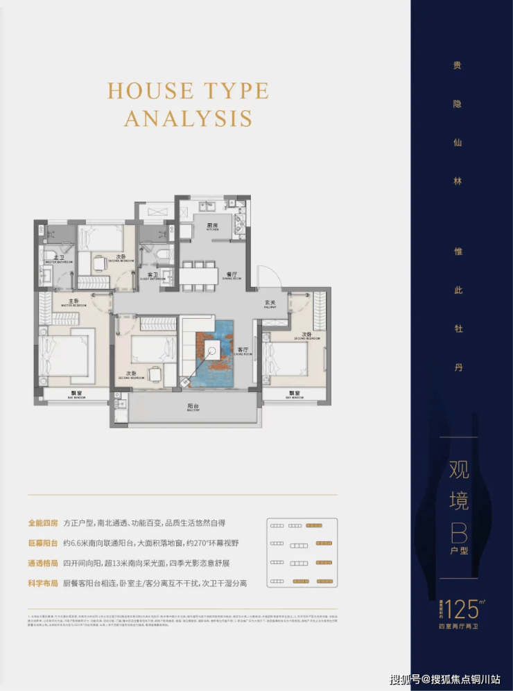 2、约125㎡四房两卫神户型,超大面落地窗阳台