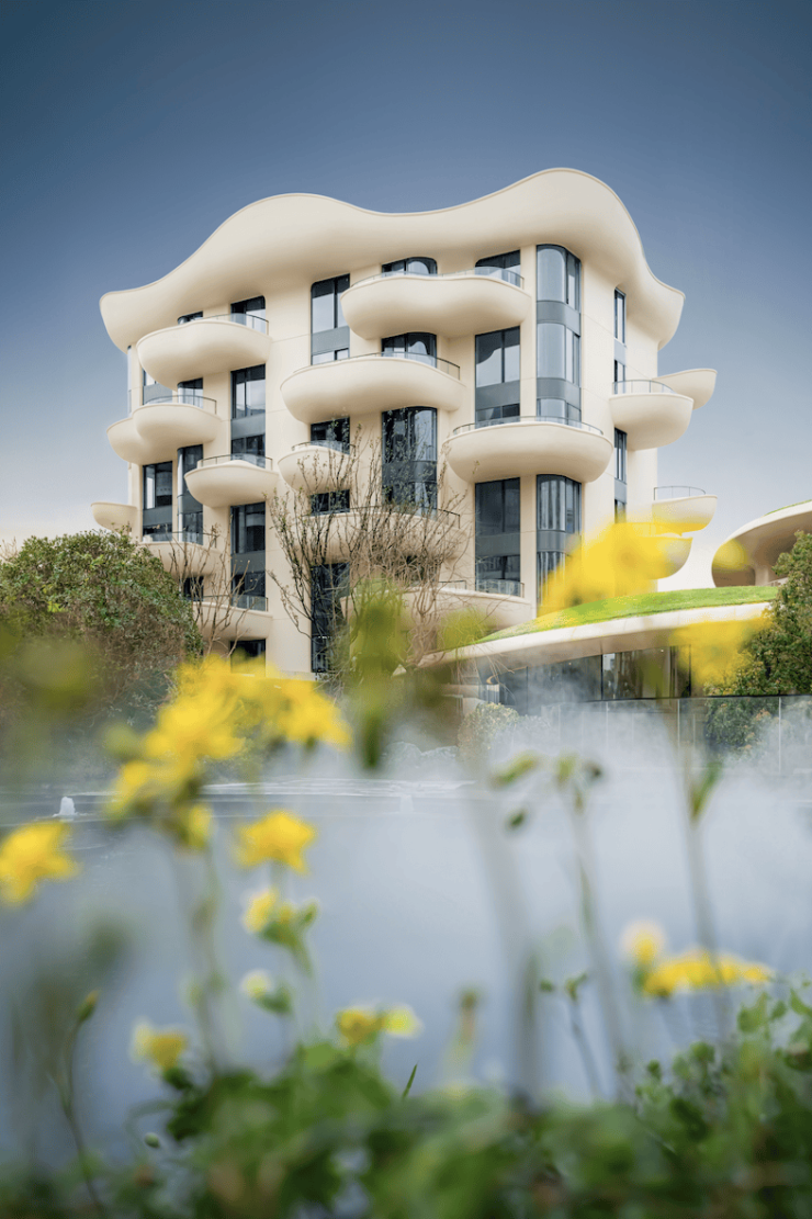 松苑的灵魂始于马岩松对“山水城市”的执念。它将中国传统山水画中的流动性与现代建筑的张力结合,通过曲线外立面与自然景观的无界相融,将建筑化作“垂直的山水”,营造公园里的家。在当时,这一设计跳脱了北龙湖区域“新中式”同质化的窠臼,以“空中庭院”“云朵露台”等创新空间,让居住者与自然对话——建筑不再是冰冷的容器,而是生长于自然的有机体。
