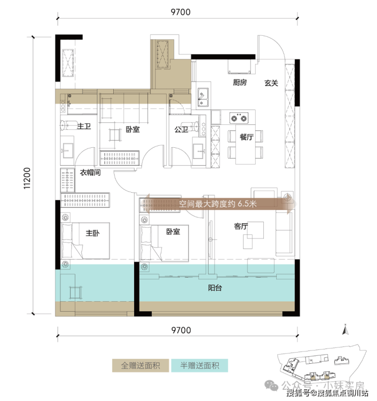 约6.5米大横厅+大两房,亦或者全功能的三房两卫,均可随心切换