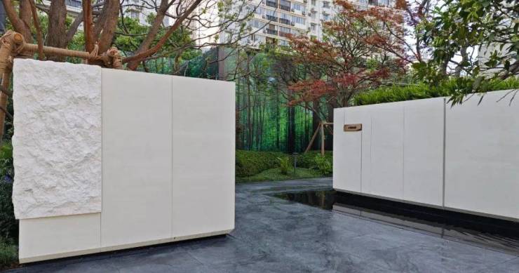 步入园区之后扑面而来的是度假感,水院围合出的一方天地让繁华与宁静在此转身,浓荫下是盈润流水,拂拭城市的喧嚣,让回家的心情在这里转换。“ 院落式景观、水院、树池、与矮景墙穿插,艺术水院 ”等场景打破建筑与室外的边界,室内外有机渗透,塑造层层递进的舒缓场景。