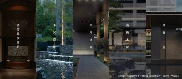 ·串联酒店尊享归家-下沉庭院-风雨连廊-蠡光水院-精奢门庭,五大归家场景,建构归家-停泊-过廊-观园-入户的礼仪动线,迭代进阶生活的仪式感。