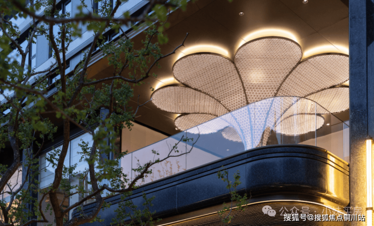 以“曲光屏”结合铝板与玻璃幕墙打造出的公建化外立面,勾勒出如“玉带环腰”般的流畅线条。