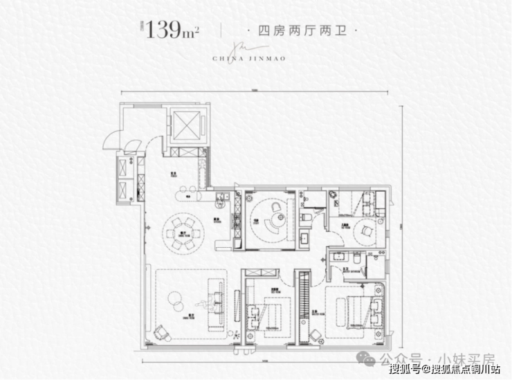 金茂樾满晴川建面约167平户型,完美贴合这一点,也难怪如此火爆了!